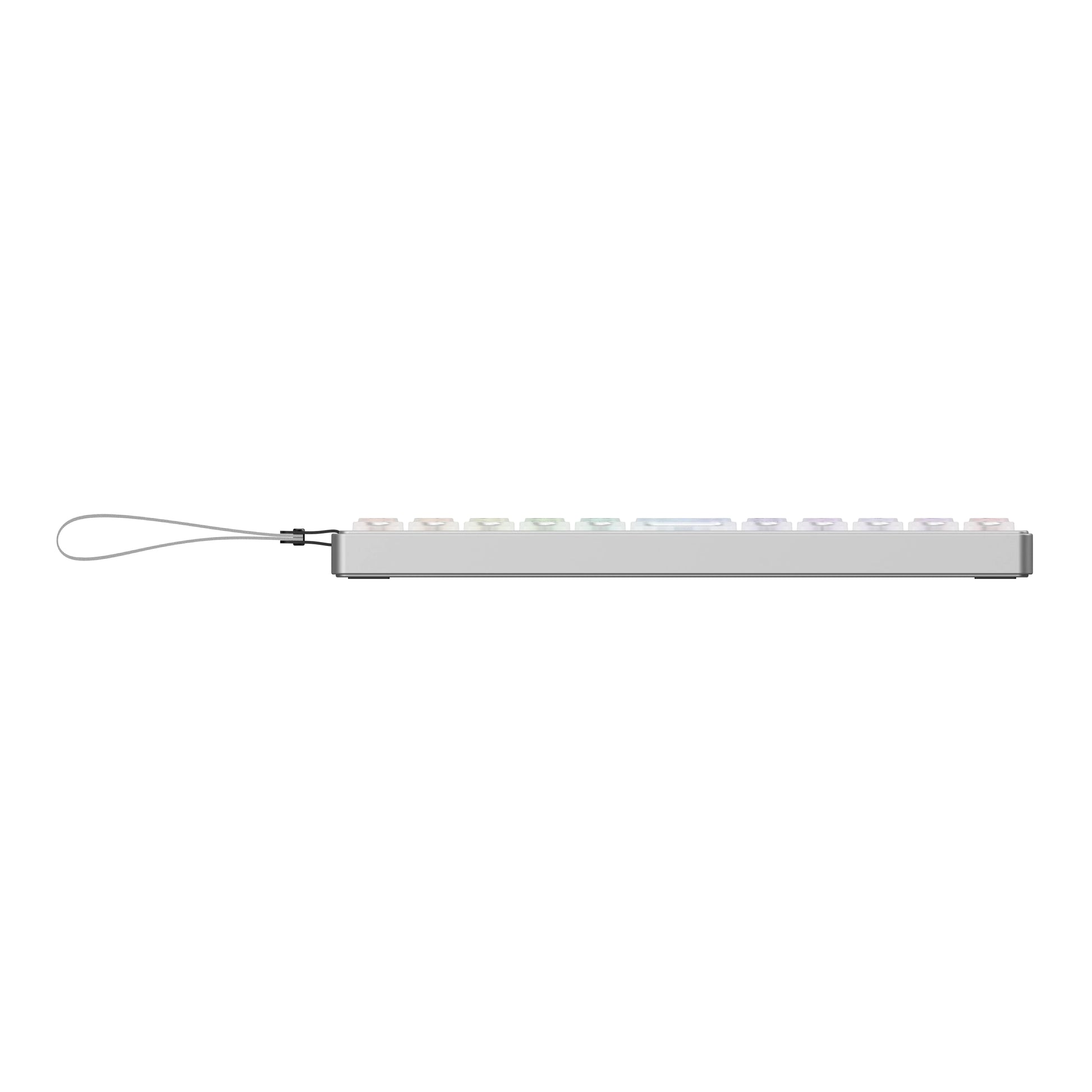 More Information...The aesthetics are rooted in minimalism with the unique 40% layout, with semi-transparent frosted white keycaps that elegantly diffuse the keyboard's RGB backlight. The legends and mac modifier signs are silk-screen printed, a subtle detail that adds to the refined look. The unique key alignment provides a cleaner visual, while the brand-embossed metal badge on the back adds a modern, elegant touch to the overall sleek design.