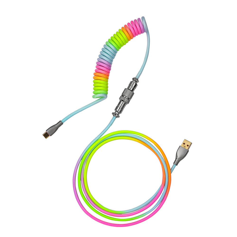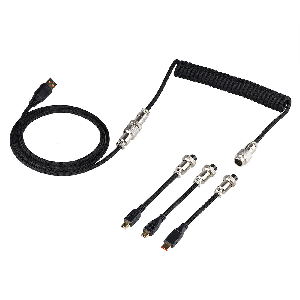Custom Coiled Double Sleeved Type-C Cable With Detachable Aviator Connector for Mechanical Keyboard
