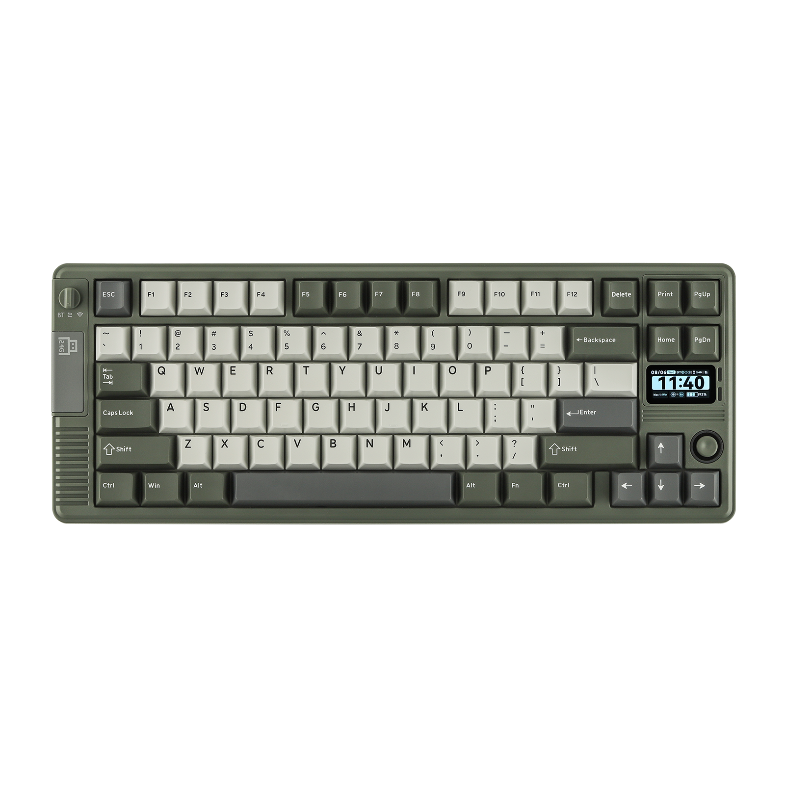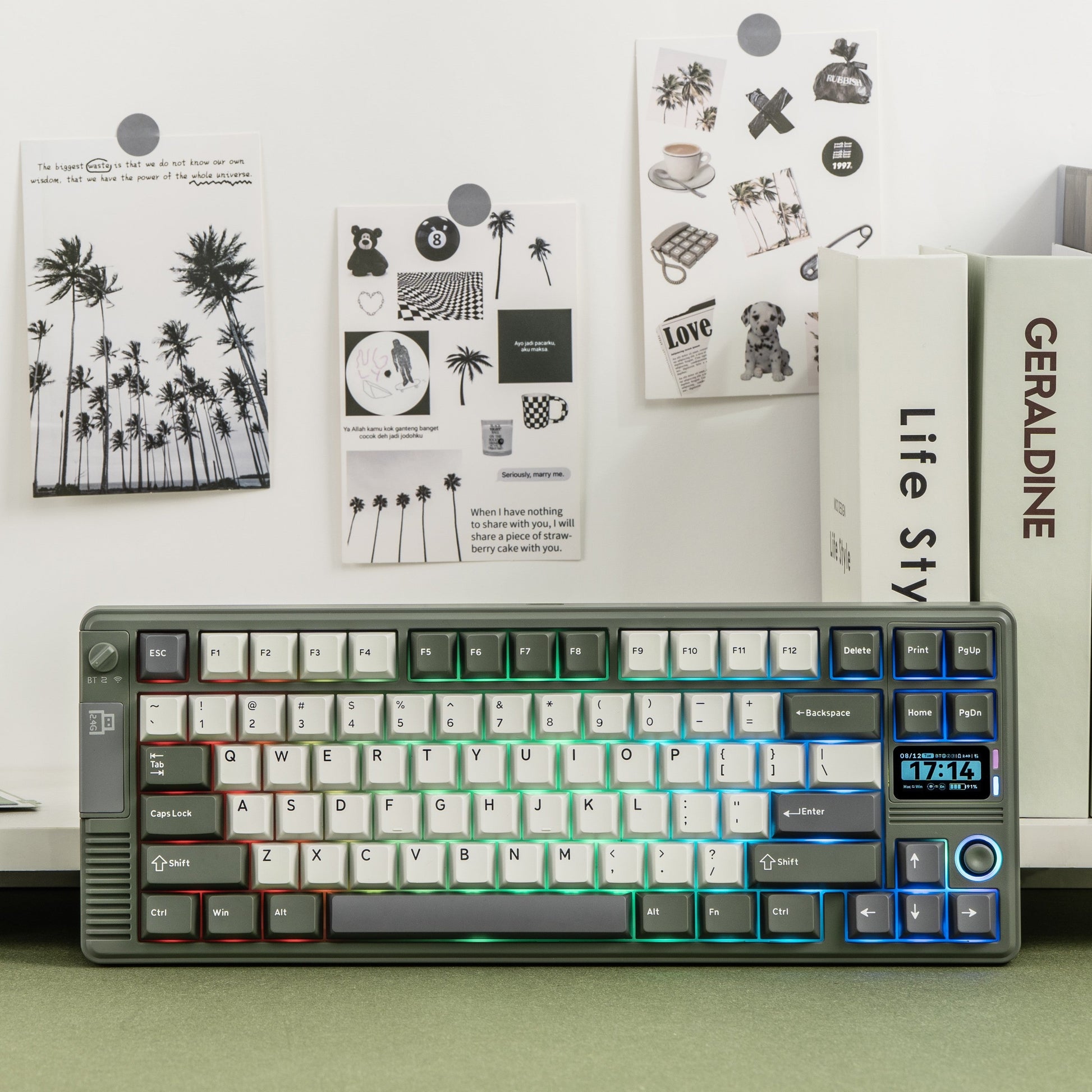 Designed for gamers with creative spirits and explorer of fun keyboards, RT85 mechanical keyboard is a joy to experience with 82 keys in PBT keycap, one custom TFT screen and a joystick. No more fumbling through menus, seamlessly adjust in-game volume or tailor RGB effects with the responsive joystick tucked around arrow keys, without breaking your flow while relaxing into your favorite leisure games. Be creative with the 3-in-1 screen that serves as smart watch, control panel and display center. Sketch out your own pixel art or show off your favorite animated GIFs, while breezing through tailoring RGB brightness and colors.