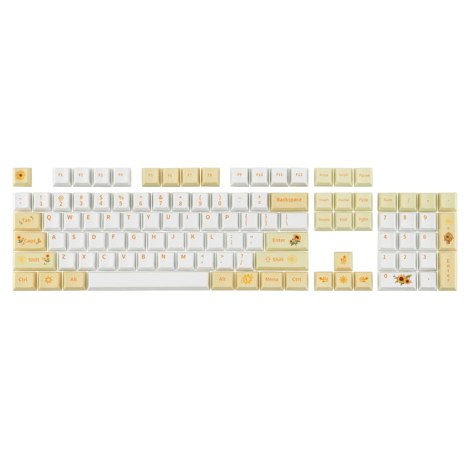 Well packed with 133 keys, the Sunflower Keycap Set is compatible with 60%, 65%, 70%, 75%, 80%, 87%, 96% and full-sized mechanical keyboards. The inclusion of both ISO and ANSI enter key makes this keycap set competent for universal use, perfect for most mainstream gaming keyboards with MX style mechanical switches