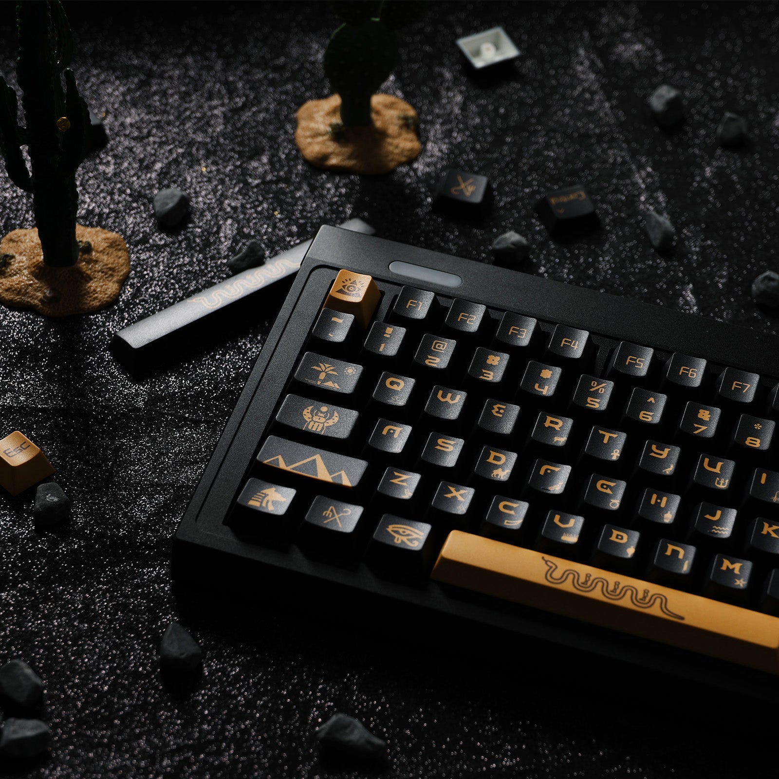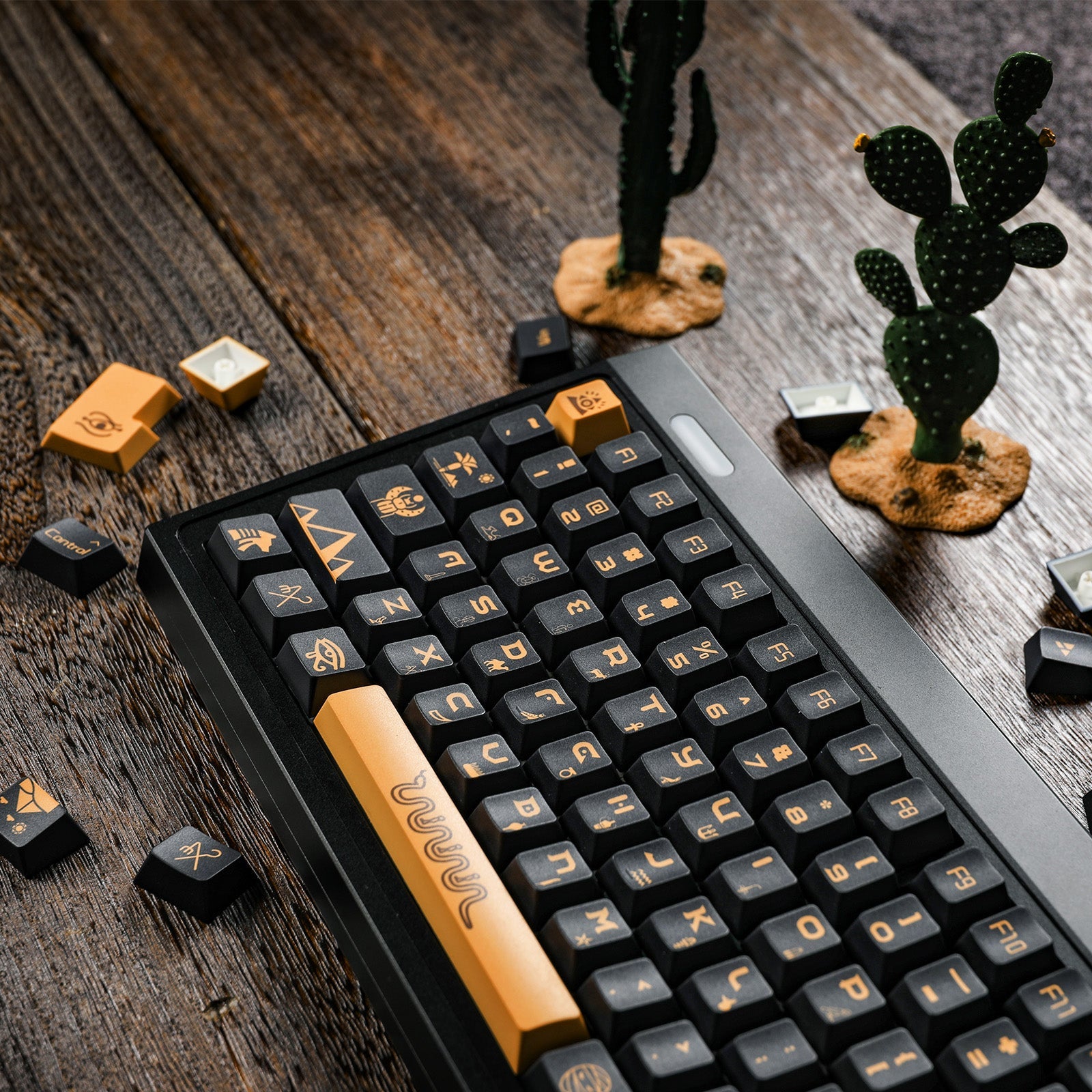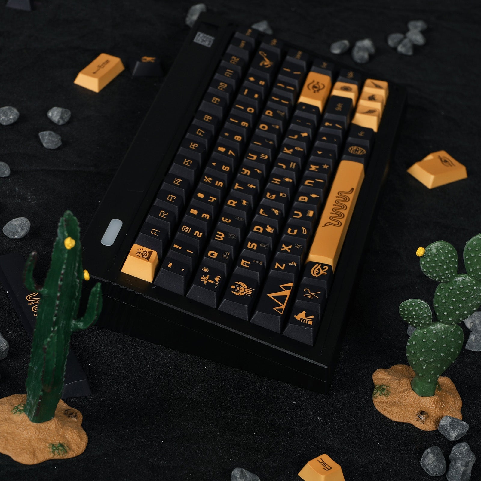 Every legend, symbol, and intricate design imprinted on these keycaps is achieved through dye sublimation—a technique that ensures the designs won't fade even after rigorous and extended use. The graphics draw inspiration from ancient desert motifs, allowing you to immerse yourself in an archaic world every time you type or game.