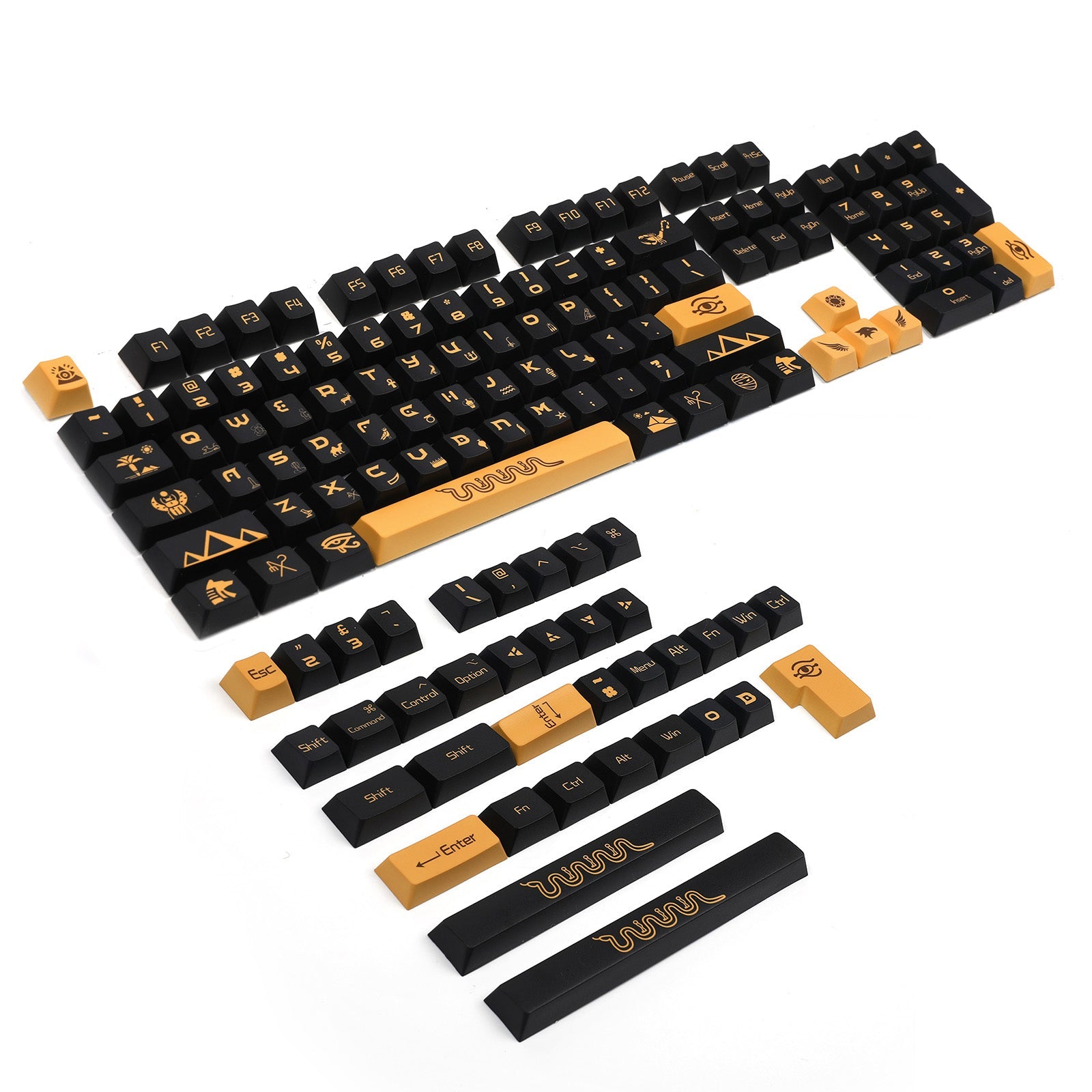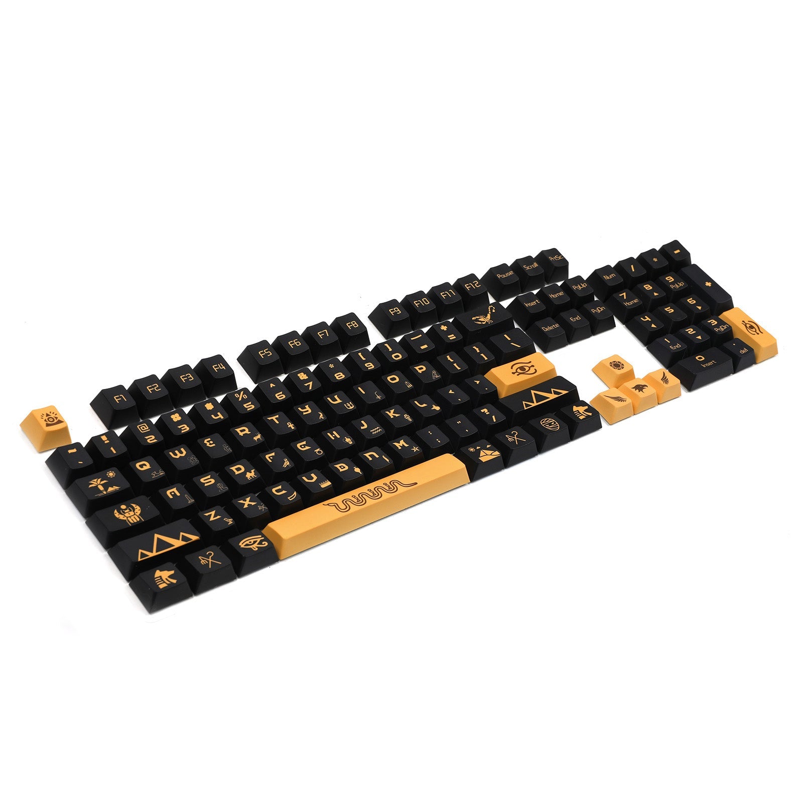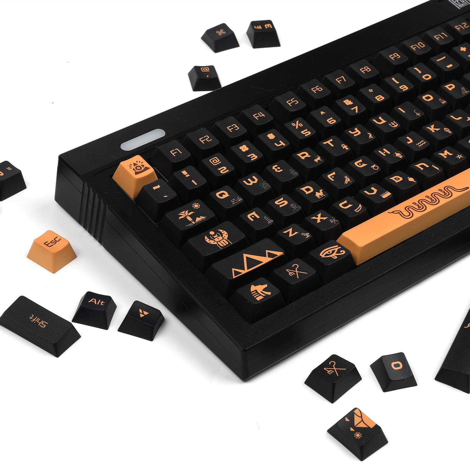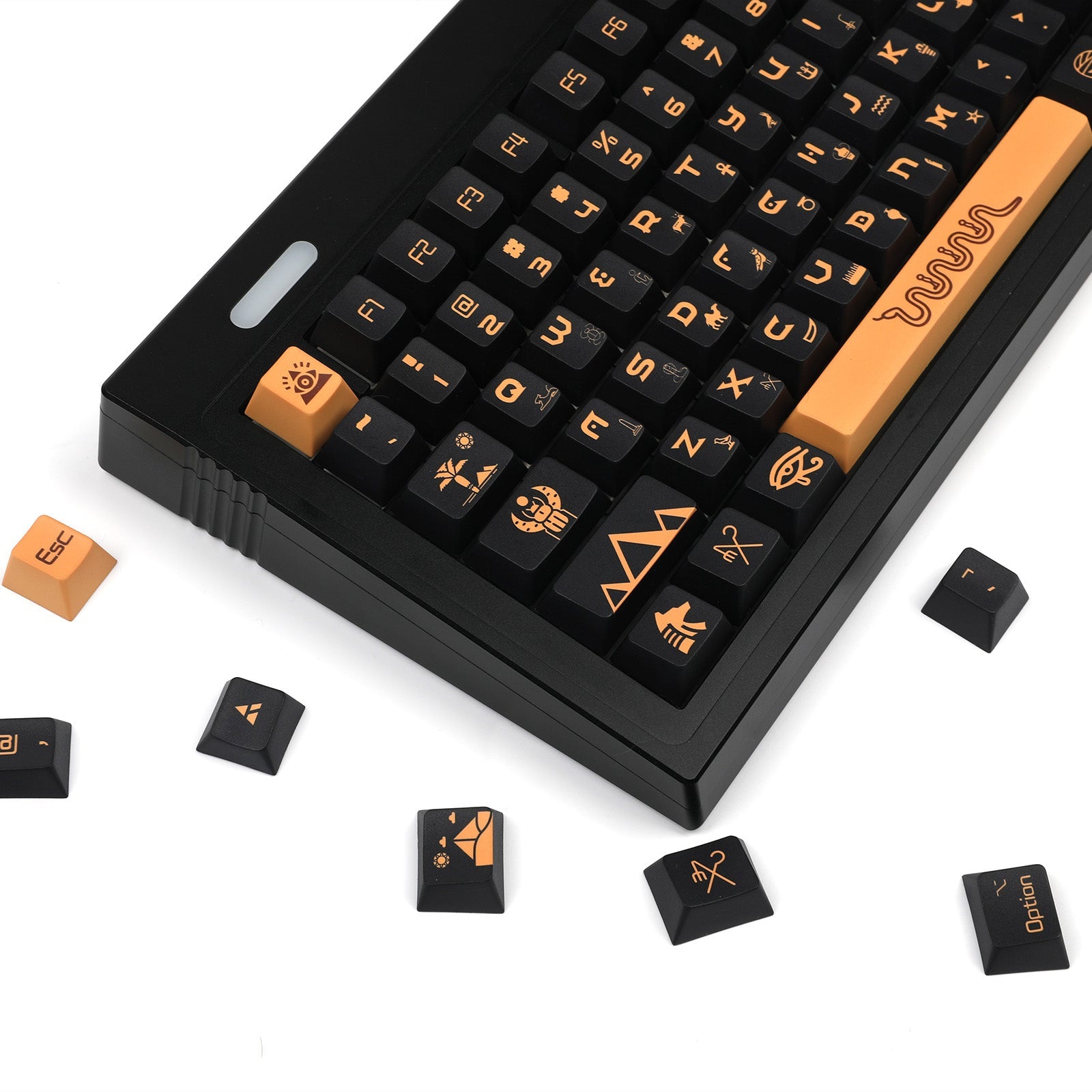 Every legend, symbol, and intricate design imprinted on these keycaps is achieved through dye sublimation—a technique that ensures the designs won't fade even after rigorous and extended use. The graphics draw inspiration from ancient desert motifs, allowing you to immerse yourself in an archaic world every time you type or game.
