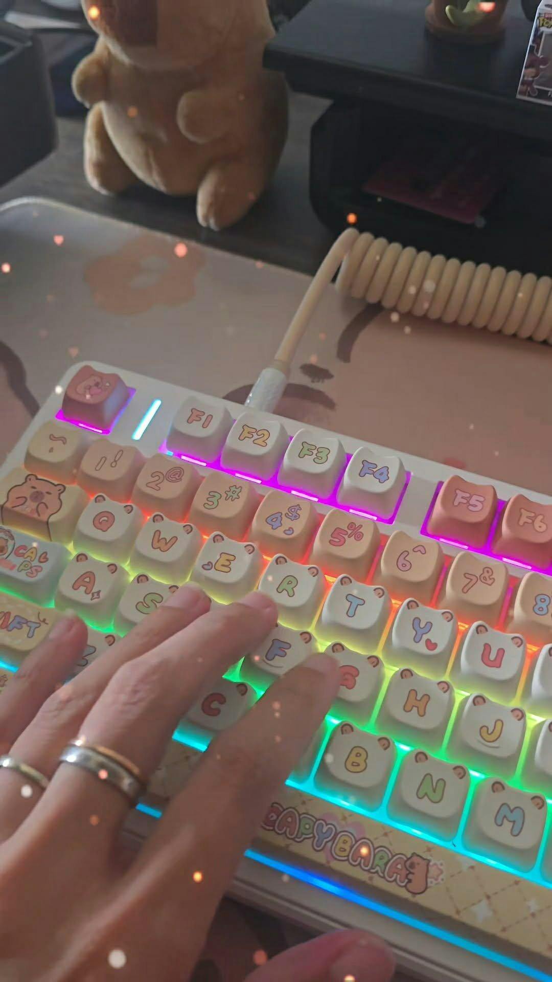 Equipped with five layers of sound-dampening materials, the F99 PRO enhances its typing acoustics. The combination of sandwich foam, IXPE switch pad, PET sound-improving film, bottom foam, and silicone case pad helps eliminate echoes and provides a pure typing sound with a stable and comfortable typing feel.
