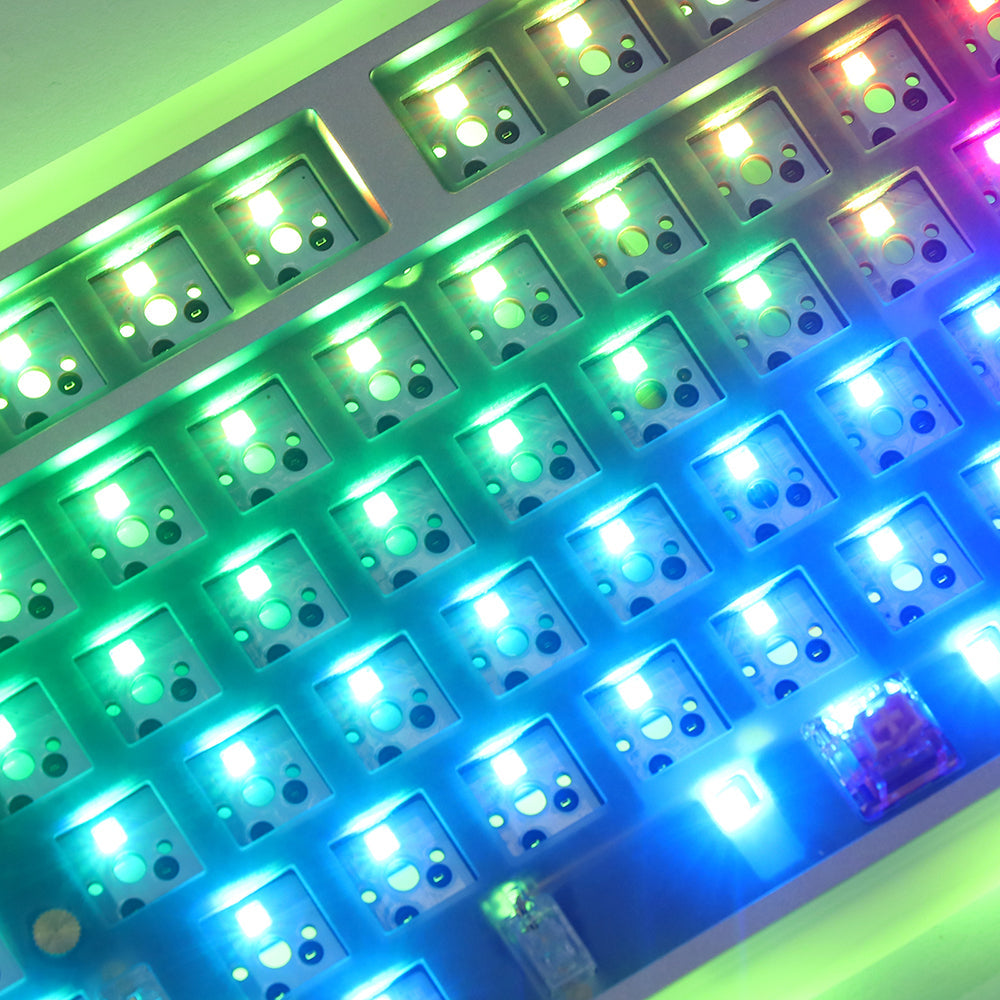 Acrylic based keyboards are friendly to typists as they can be much brighter with backlights. The Everglide SK87 kit is not only fulfilling this demand but also adding more to light up your desktop - with underglow lights! Thanks to the RGB modules on the PCB, the backlights can be changed in different modes and it is also programmable. You can enjoy your own groovy lights even under a dark environment!
