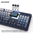 Unlock the full potential of your keyboard with the Skyloong GK104 PRO's 2.0-inch TFT LCD RGB color screen. This feature supports hot-swappable options, independent control, USB firmware upgrades, and image import with an independent real-time clock. More than just a keyboard, it also includes a built-in calculator screen that never loses power, ensuring you have a handy tool for quick calculations anytime. The keyboard also boasts three rotary knobs, enhancing your control and productivity effortlessly.